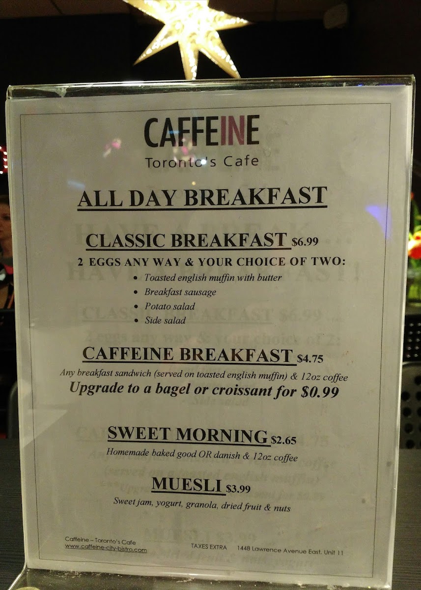 Welcome to Caffeine - Eatery & Espresso, a charming gem located at 1448 Lawrence Ave E, North York. This delightful eatery captures the essence of cozy dining with a menu designed to please all palates.